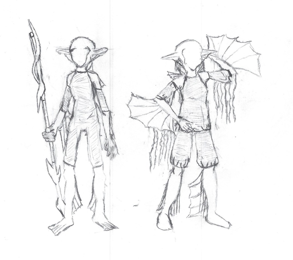 The ancestral race of the Fingal sprang from the ocean of the planet Vinge. Though they are equally capable of breathing both underwater, and in air, many fingalins will spend their entire lives underwater. As a race the Fingal tend to be very thin and tall, some standing as high as seven feet. They tend to have highly angular facial features, along with long pointed ears which extend horizontally from their slightly over-sized heads.